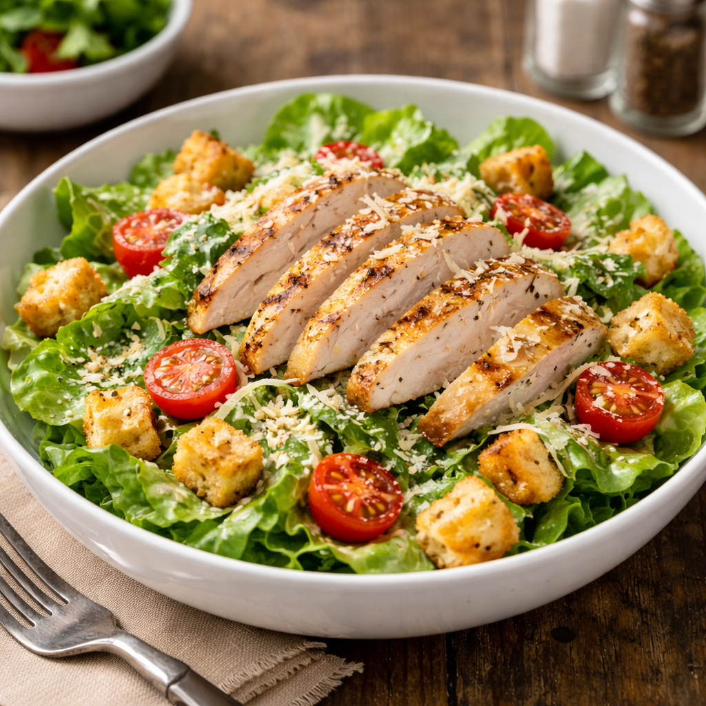 Сочные листья салата, куриное филе гриль, пармезан и фирменный соус. Лёгкий и сытный одновременно.