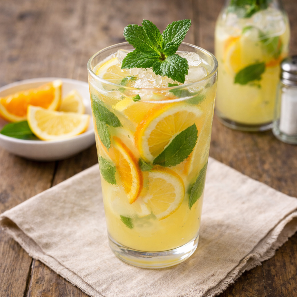 Освежающий лимонад с цитрусами и мятой, приготовленный по фирменному рецепту.